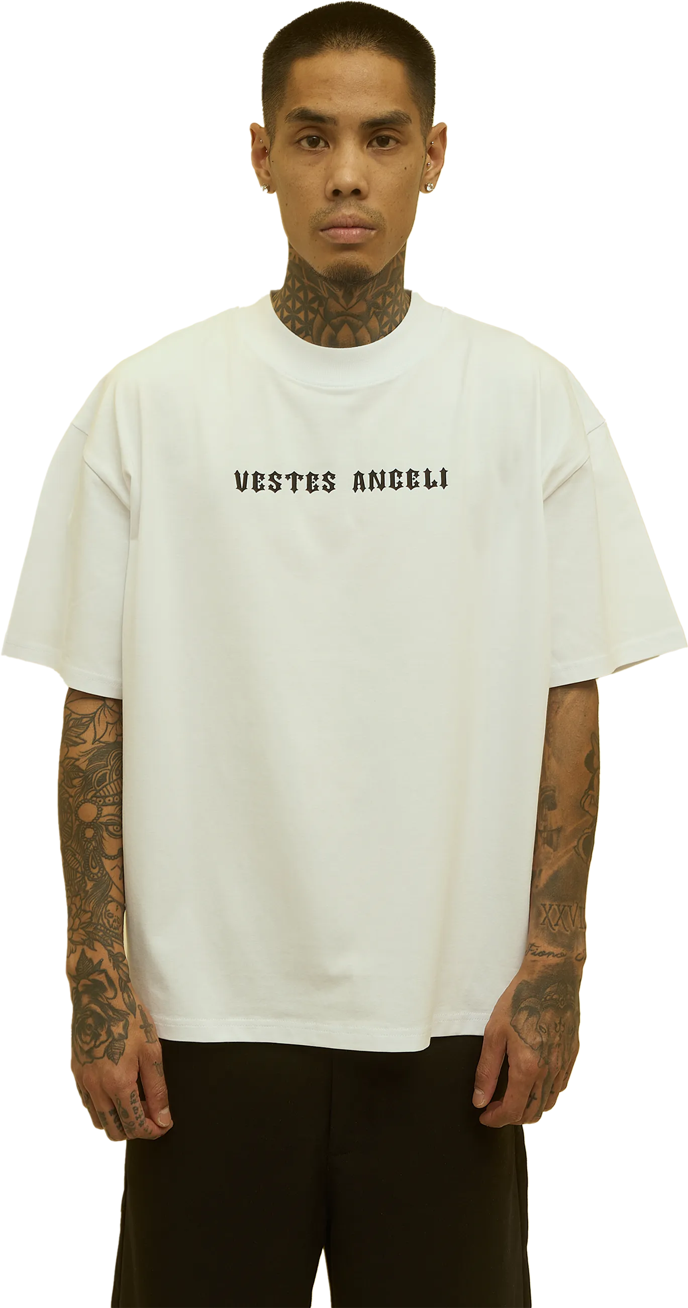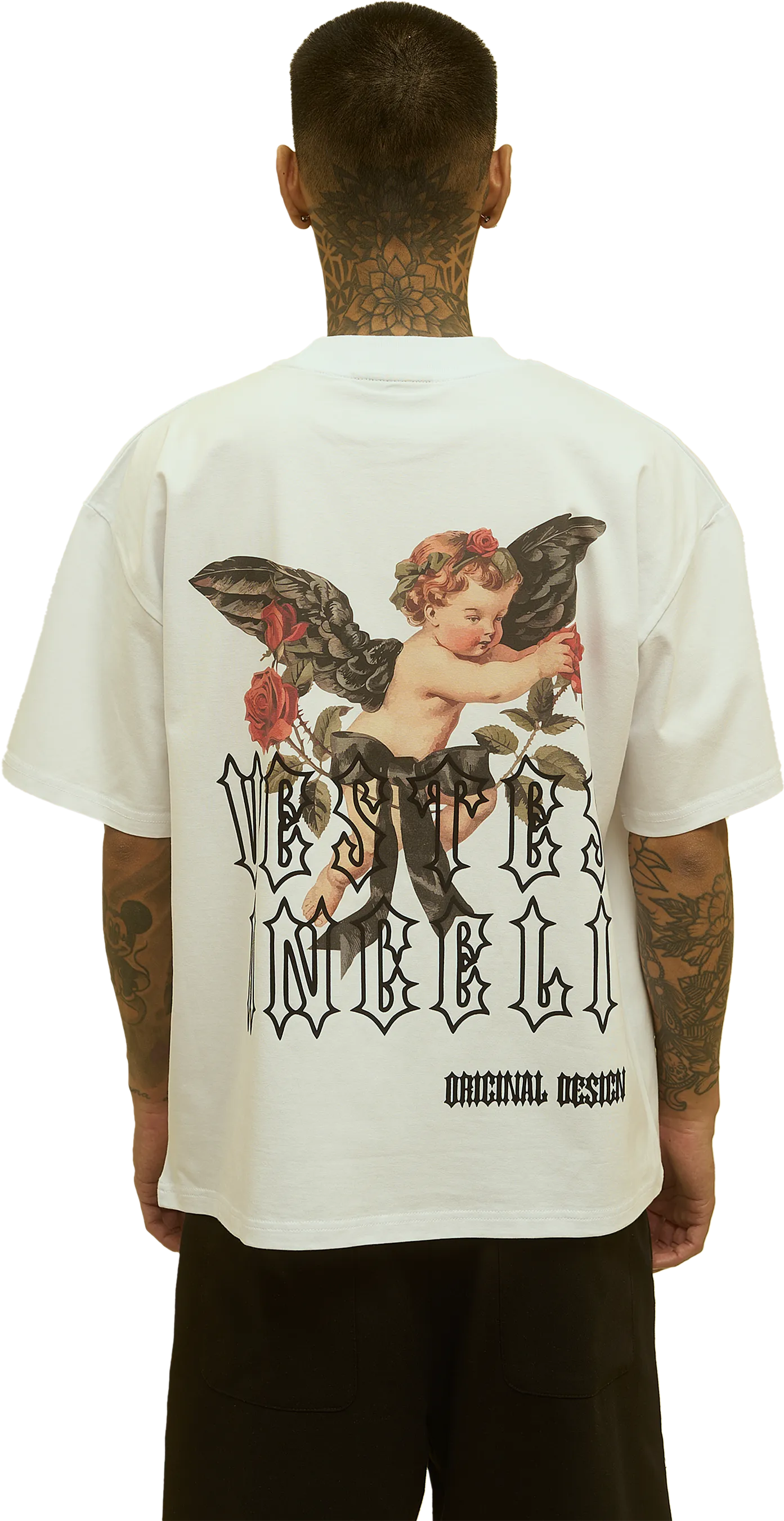 Un clásico reinterpretado con carácter. El ángel alado en tonos oscuros y rosas rojas transmite fuerza y romanticismo, mientras las letras góticas en terciopelo añaden una textura de lujo que no pasa desapercibida. Confeccionada en algodón premium y con un diseño que combina arte barroco y estética urbana, es la prenda perfecta para quienes buscan estilo, calidad y presencia en cada detalle.