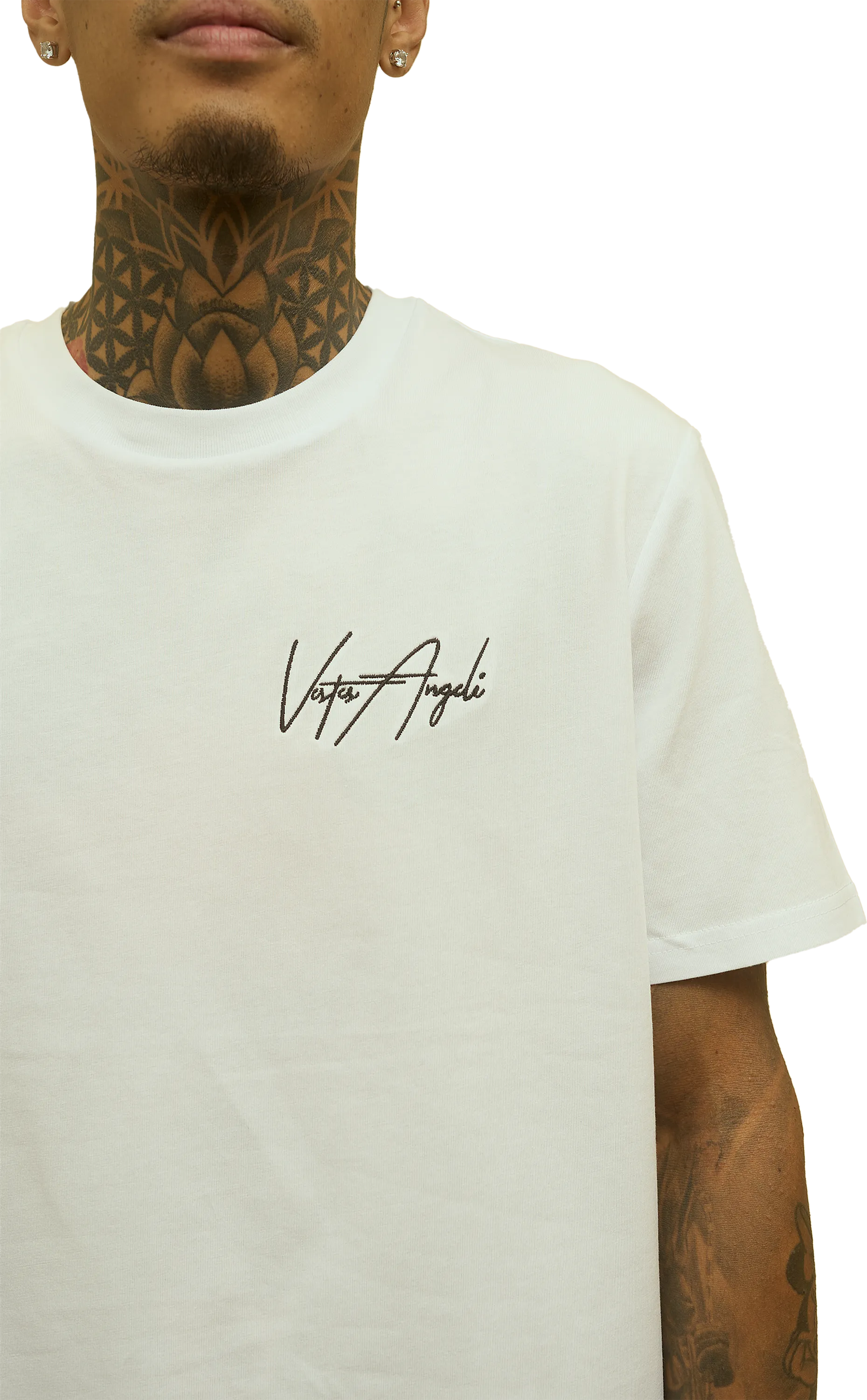 Una prenda que combina simplicidad y carácter. Confeccionada en algodón de alta calidad para ofrecer suavidad y comodidad durante todo el día. Su diseño limpio en color blanco destaca por el logo Vestes Angeli bordado en el pecho, aportando un toque exclusivo y sofisticado. Perfecta para llevar sola o como base de tus outfits más atrevidos, esta camiseta es más que ropa: es una declaración de estilo.