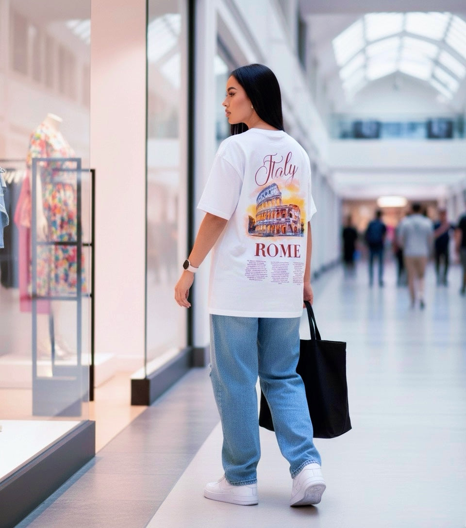 Una prenda que lleva la majestuosidad de Roma a tu armario. Con un diseño artístico del Coliseo bajo un cielo cálido, esta camiseta combina historia, cultura y estilo en una sola pieza. Hecha en algodón suave de alta calidad, ofrece comodidad sin perder elegancia. Ideal para quienes buscan vestir con personalidad y dejar que cada detalle cuente una historia.