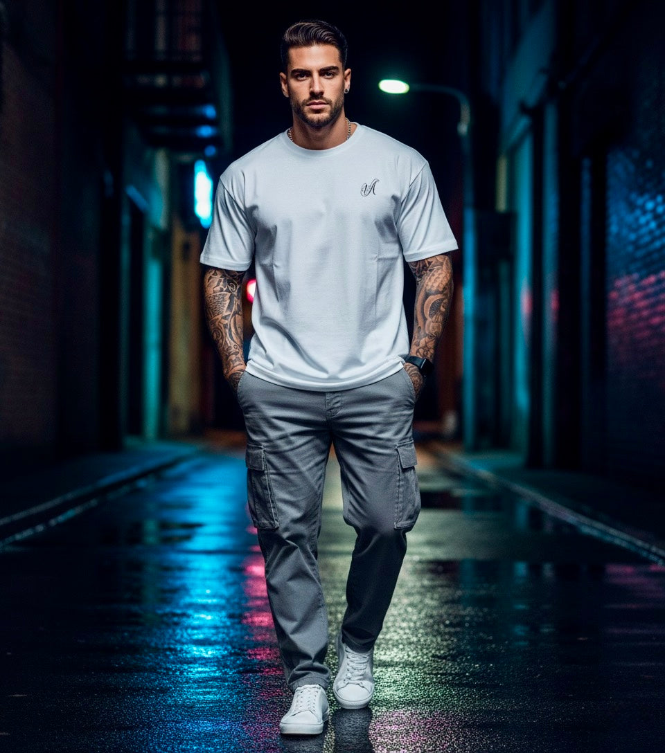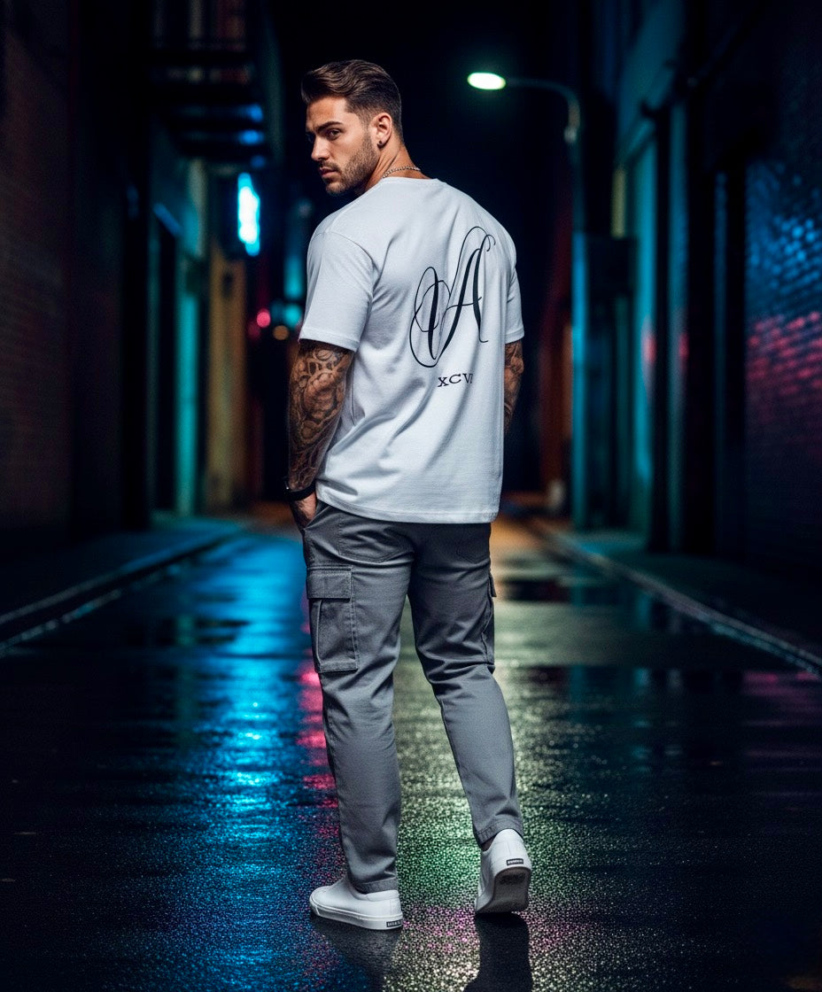 Minimalismo que habla fuerte. La camiseta VA XCVI combina una tipografía elegante y de gran formato con un diseño limpio que transmite sofisticación sin esfuerzo. Perfecta para looks streetwear o combinaciones más formales, es de algodón premium para un tacto suave y un fit cómodo. Una pieza que destaca por su simplicidad y carácter, pensada para quienes entienden que menos es más.